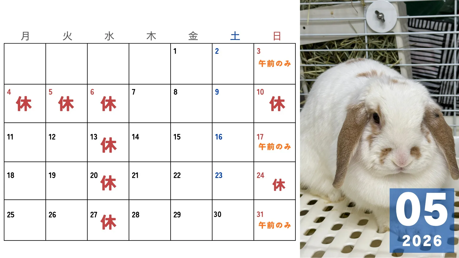 ゴールデンウィークの診察予定のカレンダーは別途掲載しております!