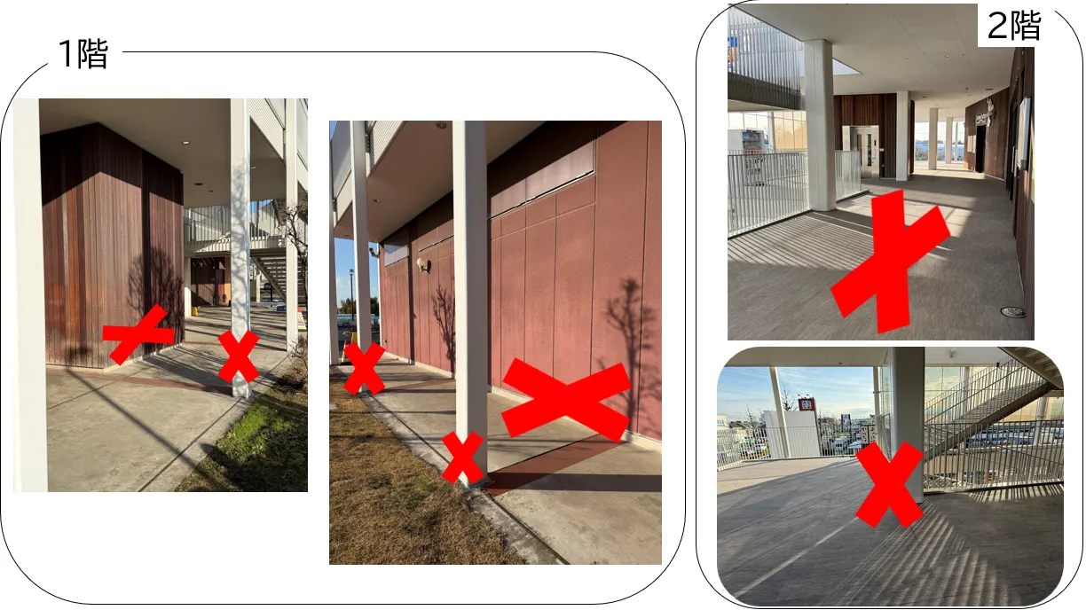・施設内の壁や柱へのマーキング行為はお控えくださいますよう お願いいたします。